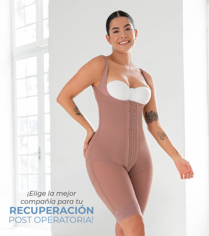 Postquirúrgica - Tipo de control: Medio  - Ref.  FPP005 Faja medio muslo con brasier Faja con cubrimiento alto de espalda, cuenta con 3 broches en la parte frontal y control en abdomen,...