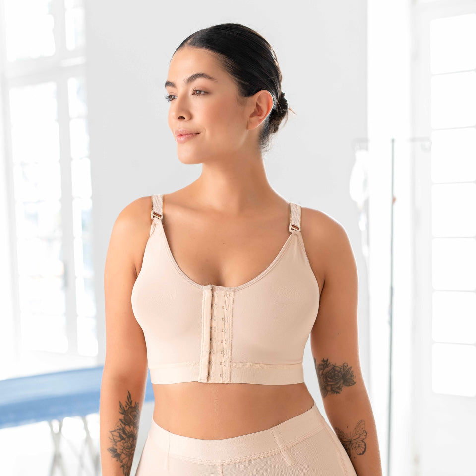 Opta por la comodidad de nuestro bra postoperatorio, diseñado con tres niveles de ajuste; este sujetador te brinda la posibilidad de adaptar la compresión a tus necesidades, además, sus cargaderas graduables y removibles permiten una versatilidad única, ofreciéndote la opción de personalizar el estilo y el soporte según tu preferencia.